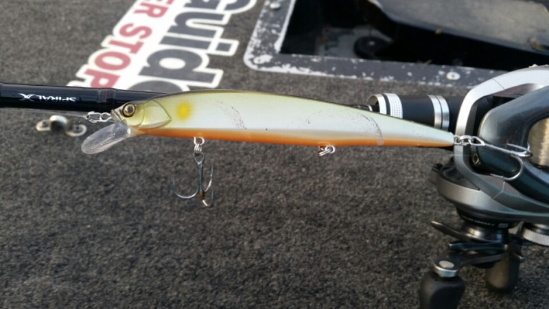 デッキにミノーを転がしてチェックで少し浮いてきました。