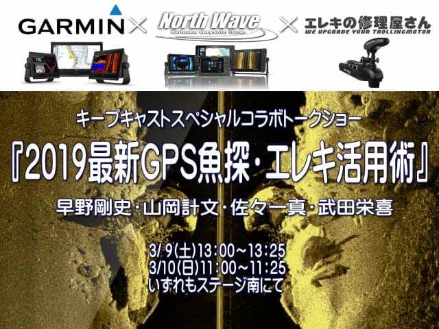 13:00~南ステージにて最新GPS魚探、エレキ活用術トークショー
