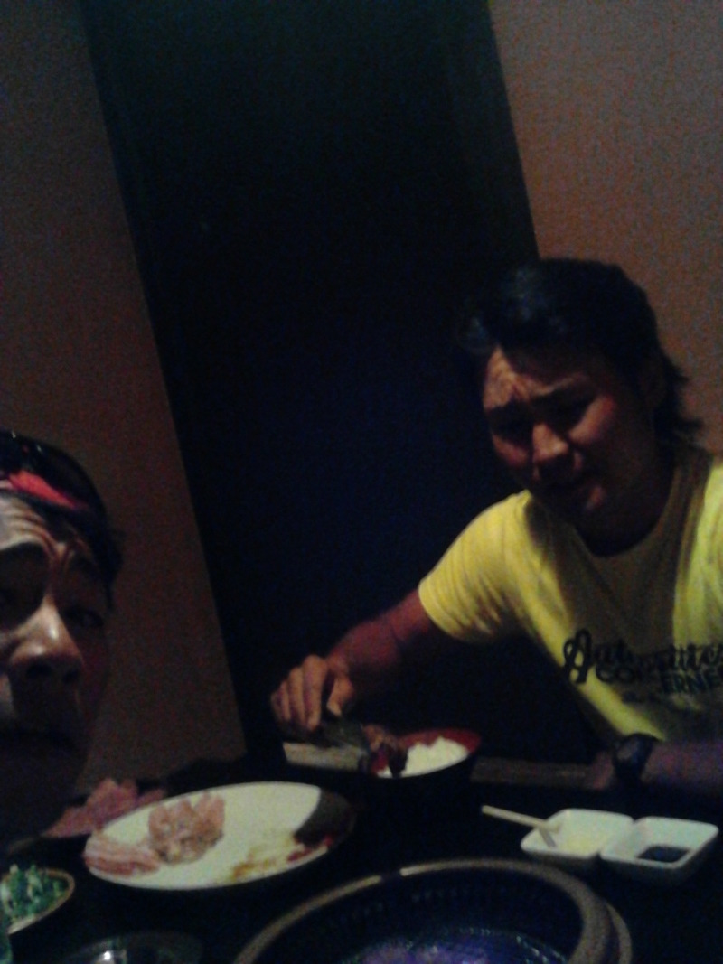 そんな時焼肉屋の隣を通ると、入店を悩む若手トーナメンターの薮田さんが。