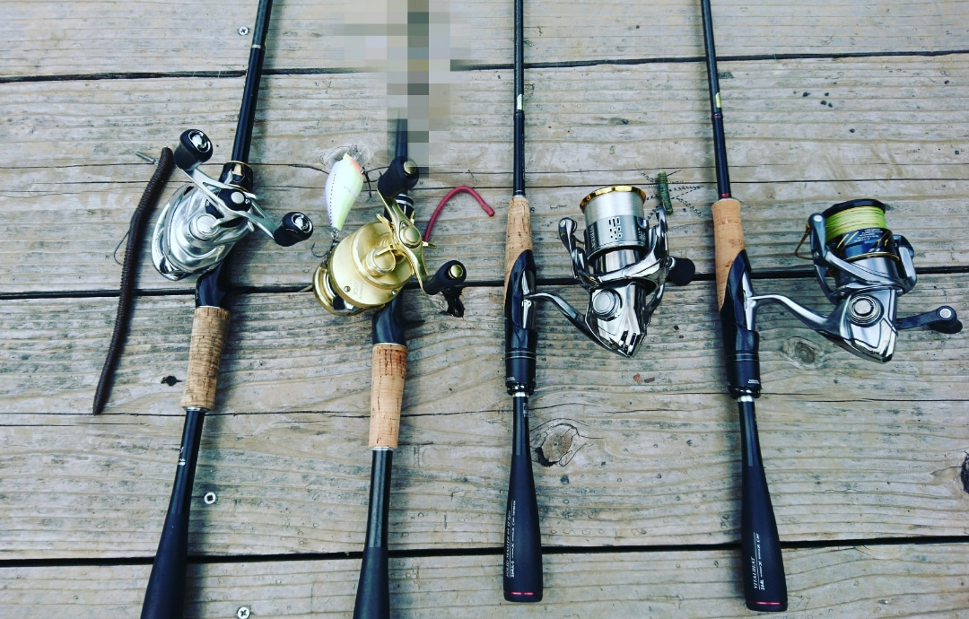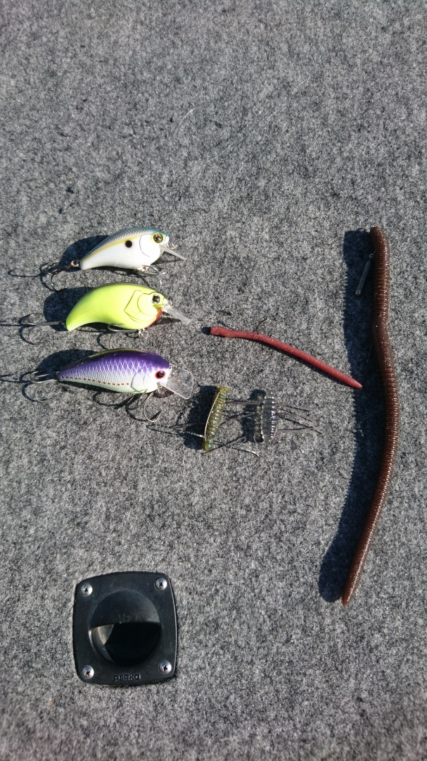 右から、9インチクラスのロングワーム、サイト用のスワンプミニ、虫は2種類を反応で使い分け。