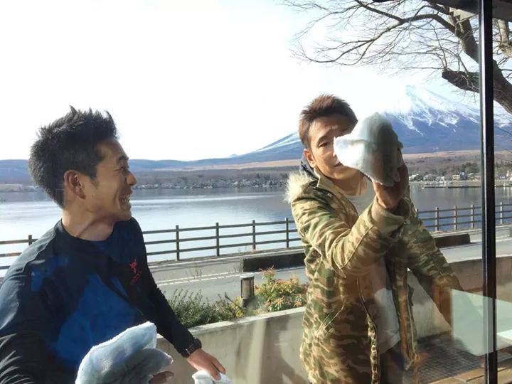 写真に入るガラスを川島さんと綺麗にしたり。笑